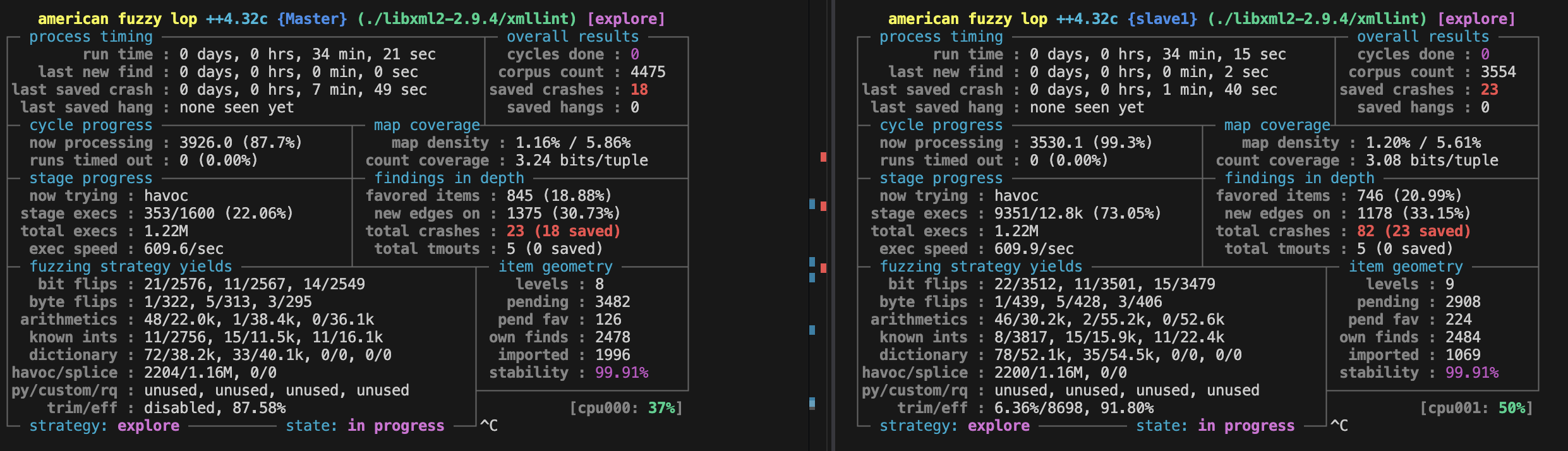 开始fuzz 配置并行fuzz 主节点和从节点协同工作提高效率
