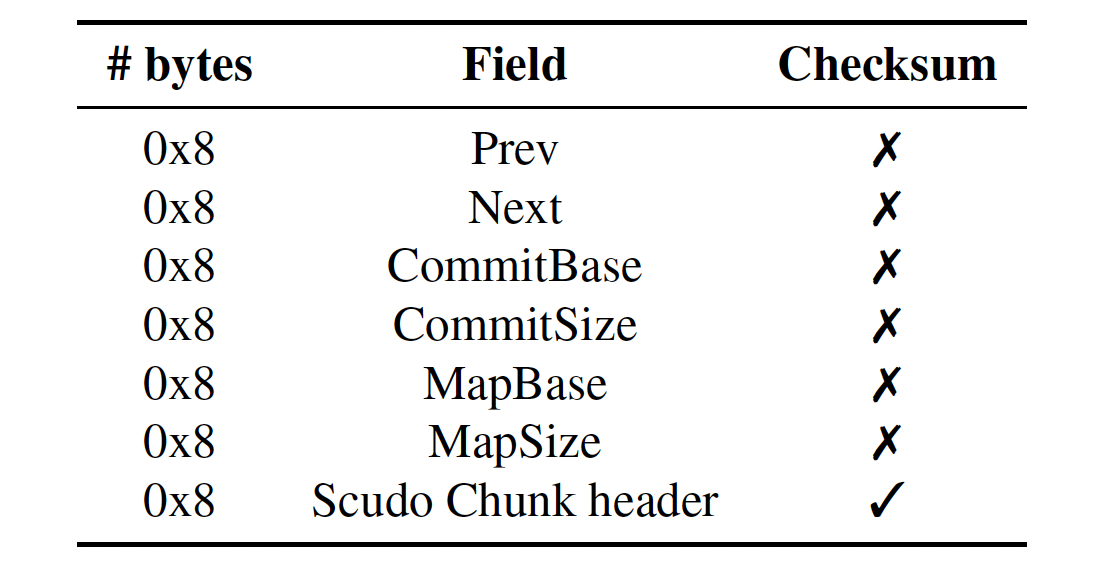 如果能泄漏TransferBatch或用于洗牌TransferBatch的seed,则可以知道scudo之后会申请的chunk 对于保护protect(chunk头相关),攻击者需要知道目标chunk地址和cookie来正确计算checksum